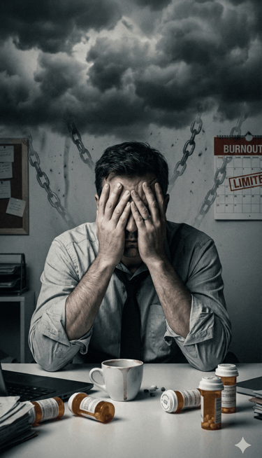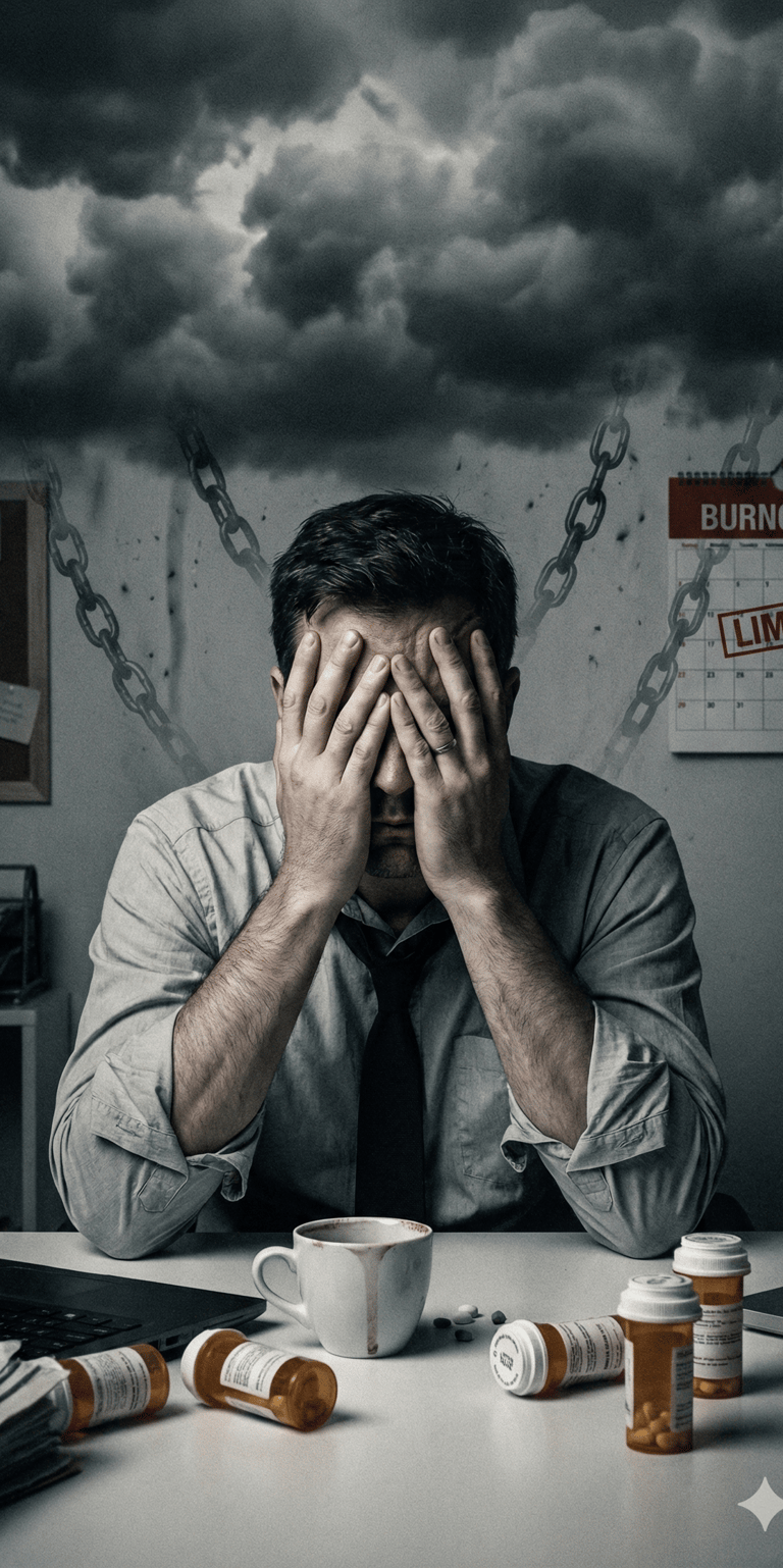 Burnout (Esgotamento): Quando o estresse do trabalho desliga suas funções vitais.